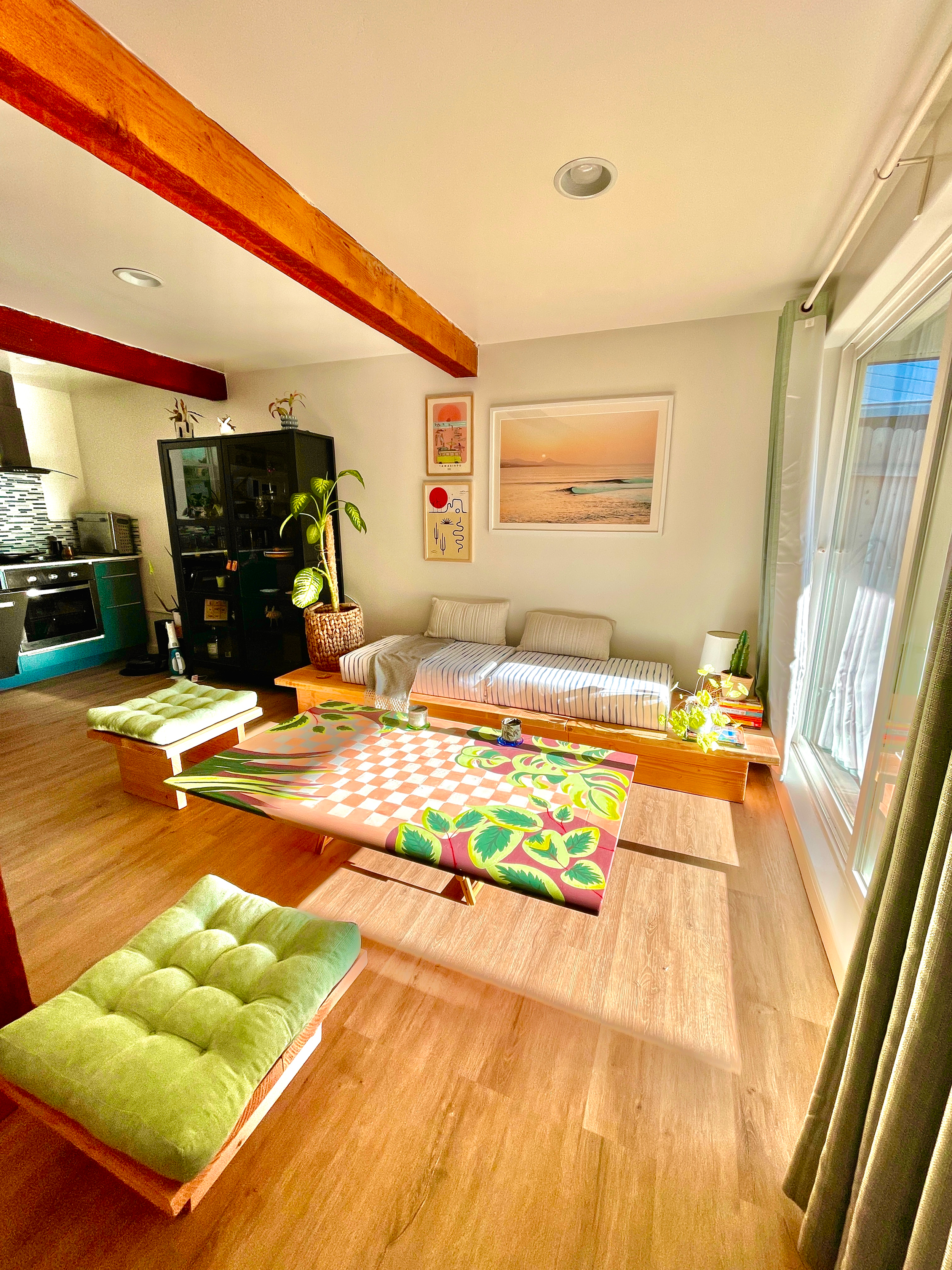 I designed the couch to be modular and low-profile, with integrated storage and the ability to reconfigure or move it in units rather than as a single heavy piece. The cushions convert into an extra-long twin sleeping surface, allowing the couch to double as guest accommodation without additional furniture.